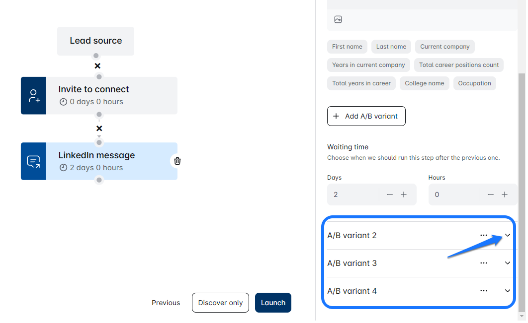- In Shoot Finder Pro, you can test different parts of your message copy, such as LinkedIn messages, Emails, InMails, Invites to Connect, or even the timing between the steps during the campaign sequence creation process. You can create up to 5 different test variants!